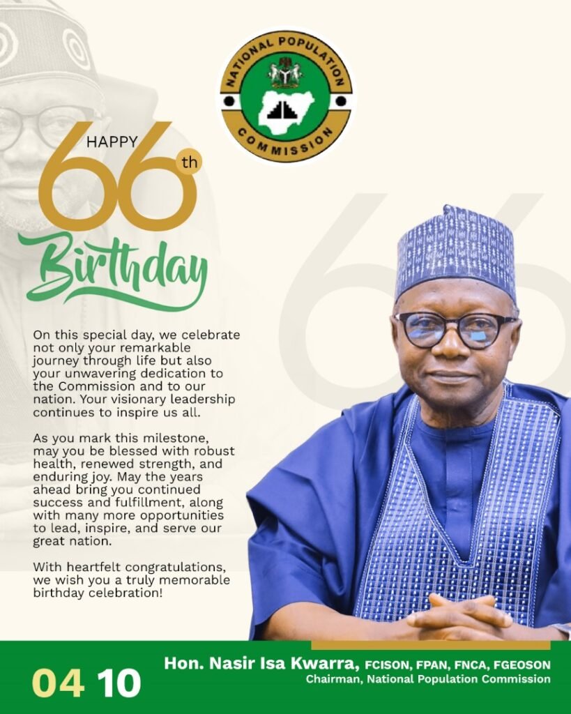 Thank you for reading this post, don't forget to subscribe!As Hon. Nasir Isa Kwarra, FCISON, FPAN, FGEOSON, FNCA, is celebrated on the occasion of his 66th birthday anniversary, it is important to reflect on his remarkable journey of leadership at the National Population Commission (NPC). Since he was appointed Chairman in 2020, Hon. Kwarra has redefined the Commission’s role in driving national planning and sustainable development through innovation, digital transformation, and strategic reforms.
