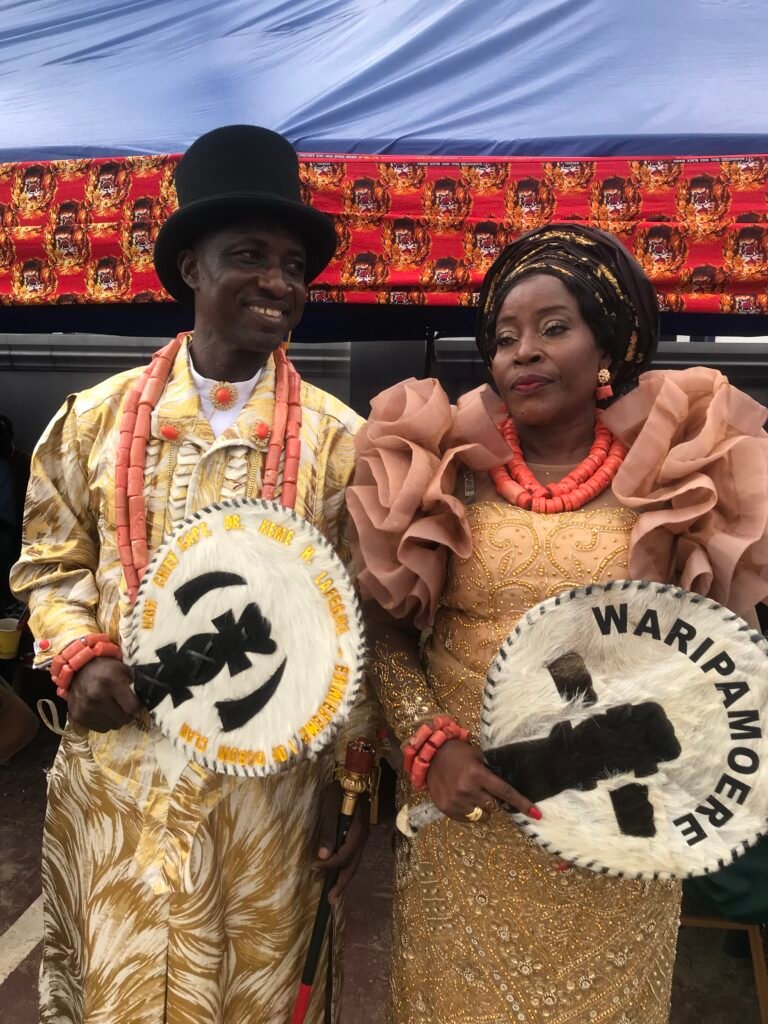 In a similar vein, his beautiful Liberian wife, Mrs. Waripamoere Tina Keme, was also honoured with the chieftaincy title of Ebe Ere Pamo Ere of the Ogboin Clan by His Royal Majesty, the King, as part of the activities marking his 66th birthday and 21 years on the throne. It was indeed a double honour and celebration for the Lafegha dynasty.