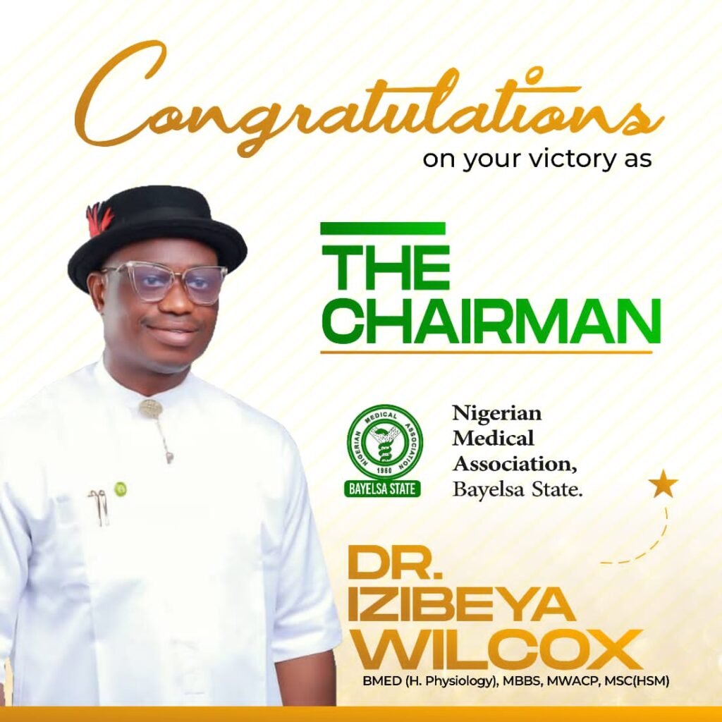 Warm congratulations are in order for my high school classmate, Dr. Izibeya Wilcox, on his recent election as the Chairman of the Nigeria Medical Association, Bayelsa State branch. This tremendous achievement is a testament to his hard work, dedication, and exceptional expertise in the field of medicine.