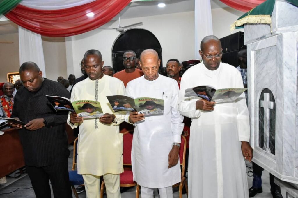 The service featured thanksgiving and song rendition by the late Diri’s children led by the governor, prayers as well as praise and worship sessions.
