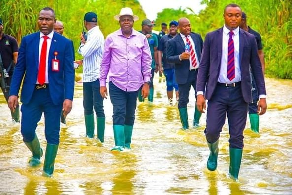 Governor of Bayelsa State, Senator Douye Diri again today took on-the-spot assessment tour of more communities impacted by flood in the State.