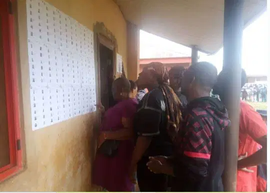 Voters checking their names in the INEC voters list