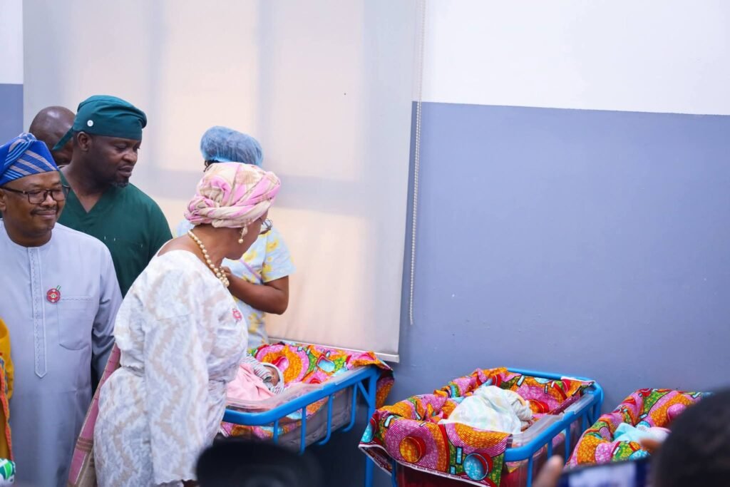 The First Lady also celebrated Mrs. Blessing Oragwu, who gave birth to triplets—two boys and a girl—after 13 years of marriage, as well as another baby boy delivered today at FMC Jabi.