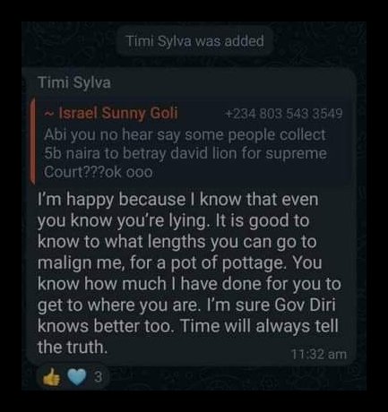 The move came after accusations made by a former member of the House of Representatives Hon. Israel Sunny-Goli, who accused Sylva of collecting N5 billion to betray Chief David Lyon’s governorship in 2019.