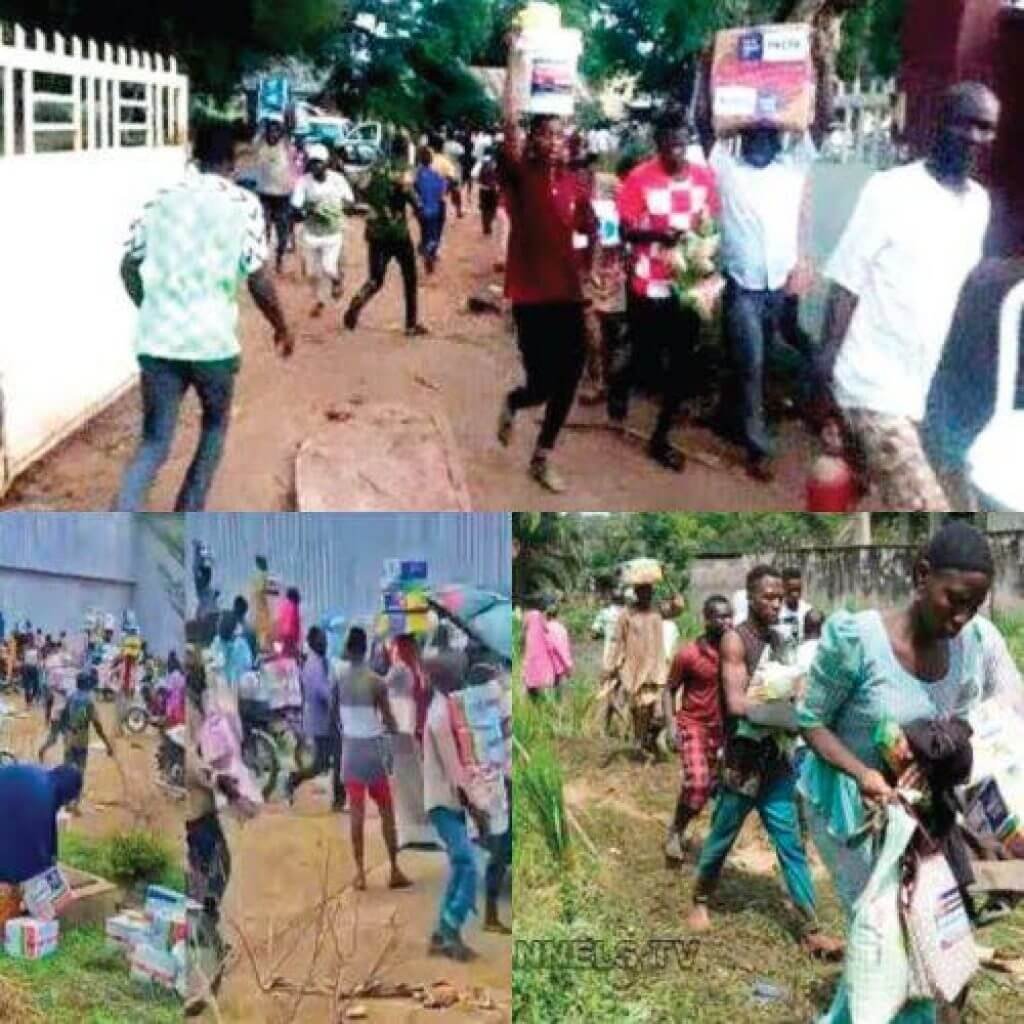 The remnants, which were swept from the floor and packed in disused bags, were less than 10 bags of rice and garri and with some broken cans of oil.