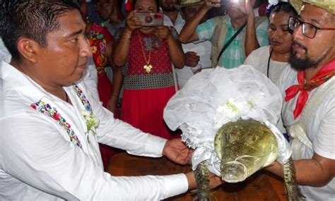 The Mayor of a small town in Southern Mexico entered into holy matrimony with a female reptile in a traditional rite to bring good fortune to his people, amidst clapping and dancing by onlookers