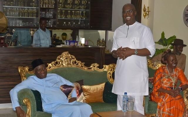 H.E (Chief) Timipre Sylva, the All Progressive Congress (APC) candidate for the upcoming Bayelsa state governorship elections, visited former President Goodluck Ebele Jonathan at his residence on Thursday.