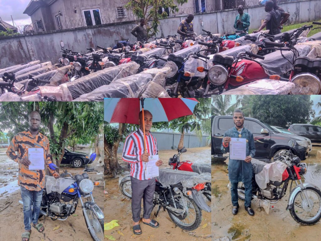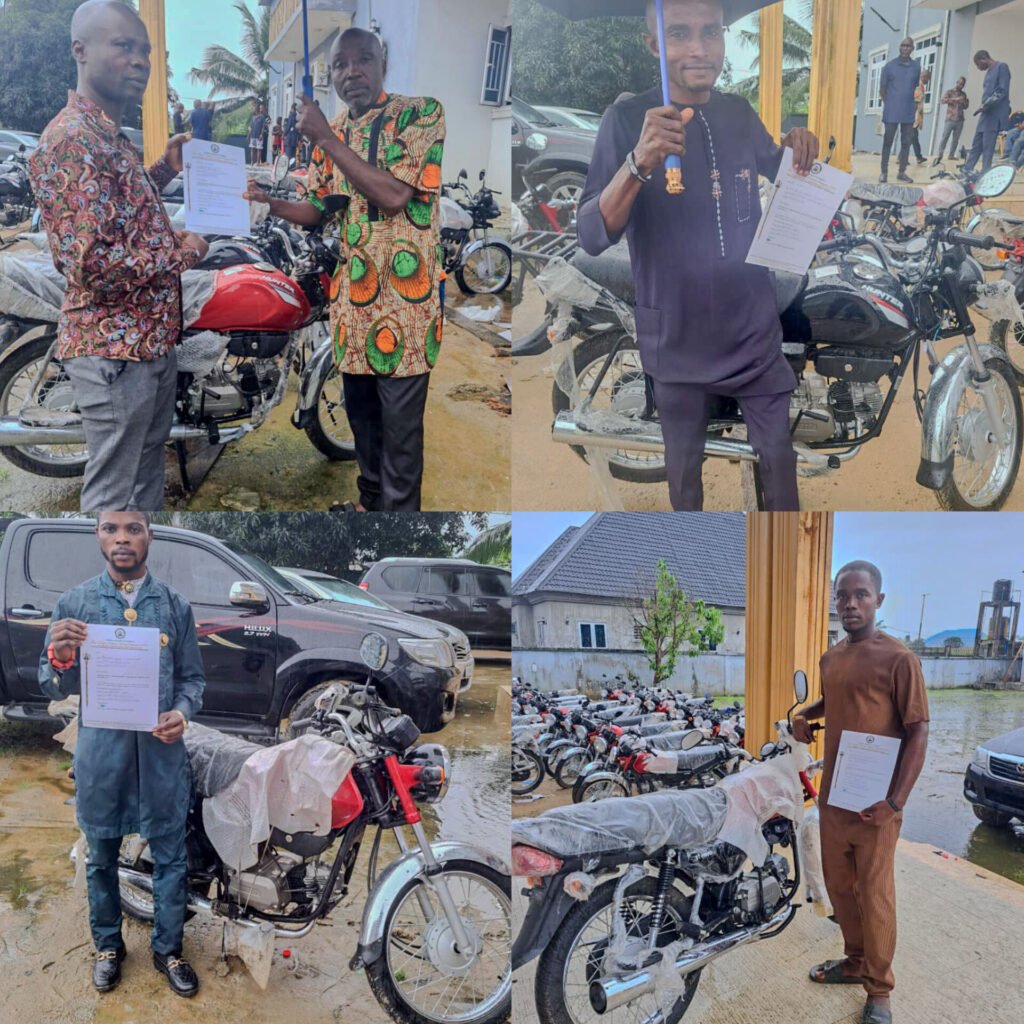 Under the initiative, motorcycles were distributed to non-governmental organizations (NGOs), youth groups, and community associations in partnership with the Office of the Special Assistant to the President on Sustainable Development Goals (SDGs).