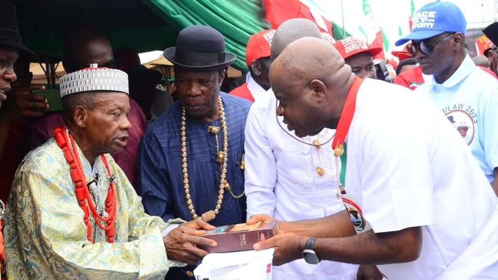 The campaign trail also visited the palace of the Odion of Ofoni Federated Community, where the 98-year-old oldest man in the community, Chief Timothy Ejuvwevwo, gave Diri and Ewhrudjakpo his blessings.
