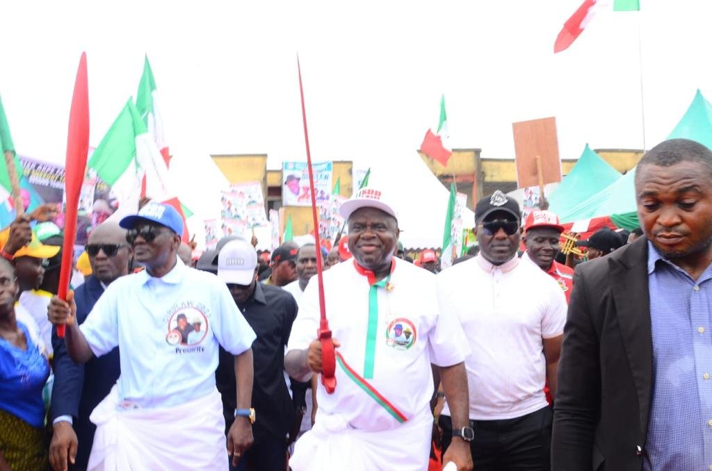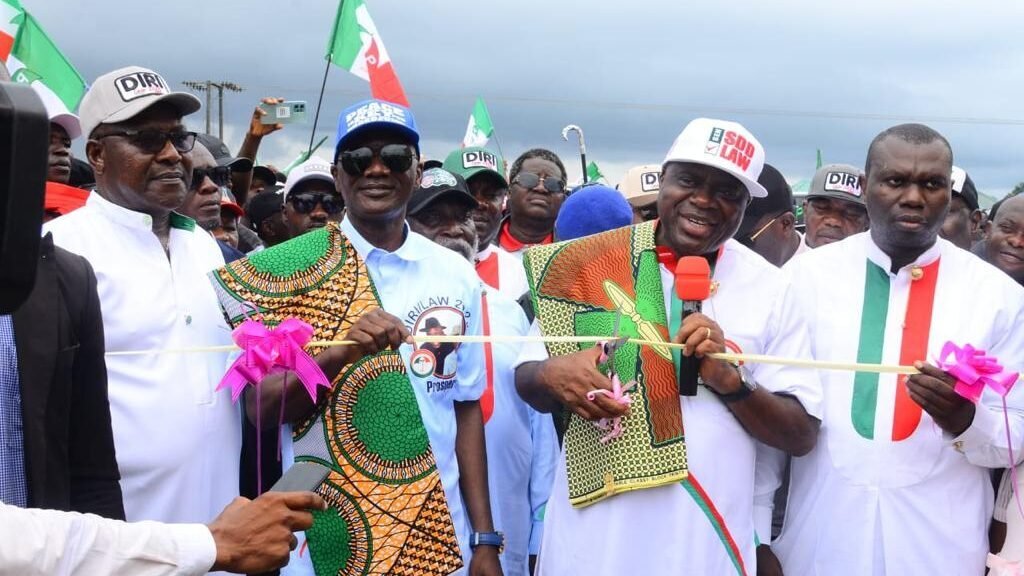 The PDP campaign made stops at Bolou-Orua, Ebedebiri, where the governor inaugurated a newly-built multiple purpose town hall as well as Angalabiri where an internal road and a bridge linking the community to Toru-Orua were inaugurated.