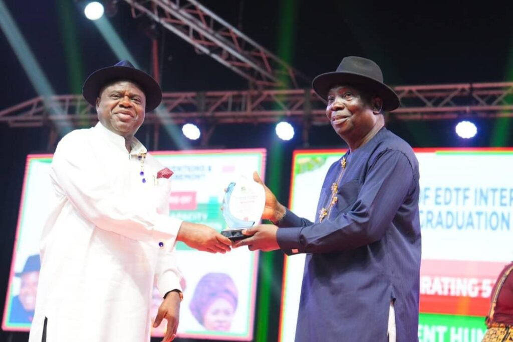 Diri, who was a recipient, on behalf of the EDTF presented Honorary Ambassador of Education Award to former President Goodluck Jonathan, Senator Dickson, Senator Emmanuel Paulker and Chief Fred Agbedi, member representing Sagbama/Ekeremor Federal Constituency in the House of Representatives in recognition of their invaluable contributions.